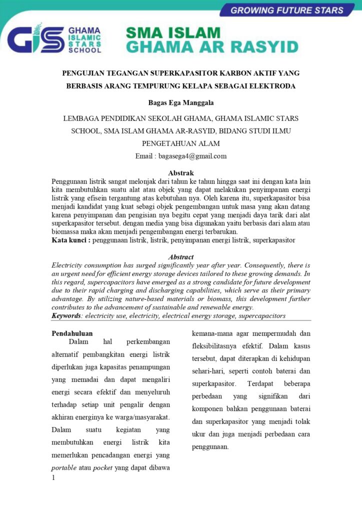 Pengujian Tegangan Superkapasitor Karbon Aktif Yang Berbasis Arang Tempurung Kelapa Sebagai Elektroda 28/02/2026