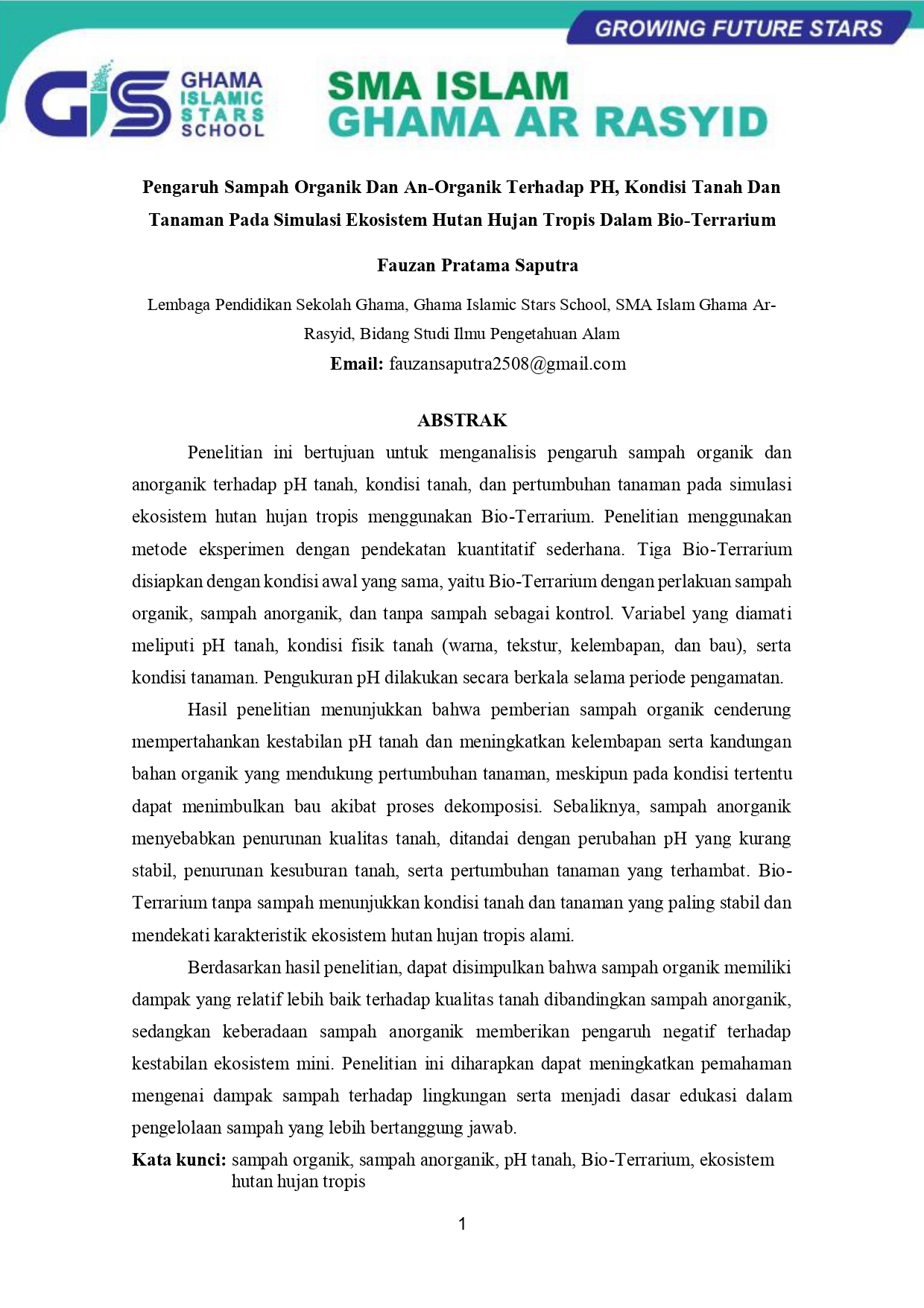 Pengaruh Sampah Organik Dan An-Organik Terhadap PH, Kondisi Tanah DanTanaman Pada Simulasi Ekosistem Hutan Hujan Tropis Dalam Bio-Terrarium 28/02/2026